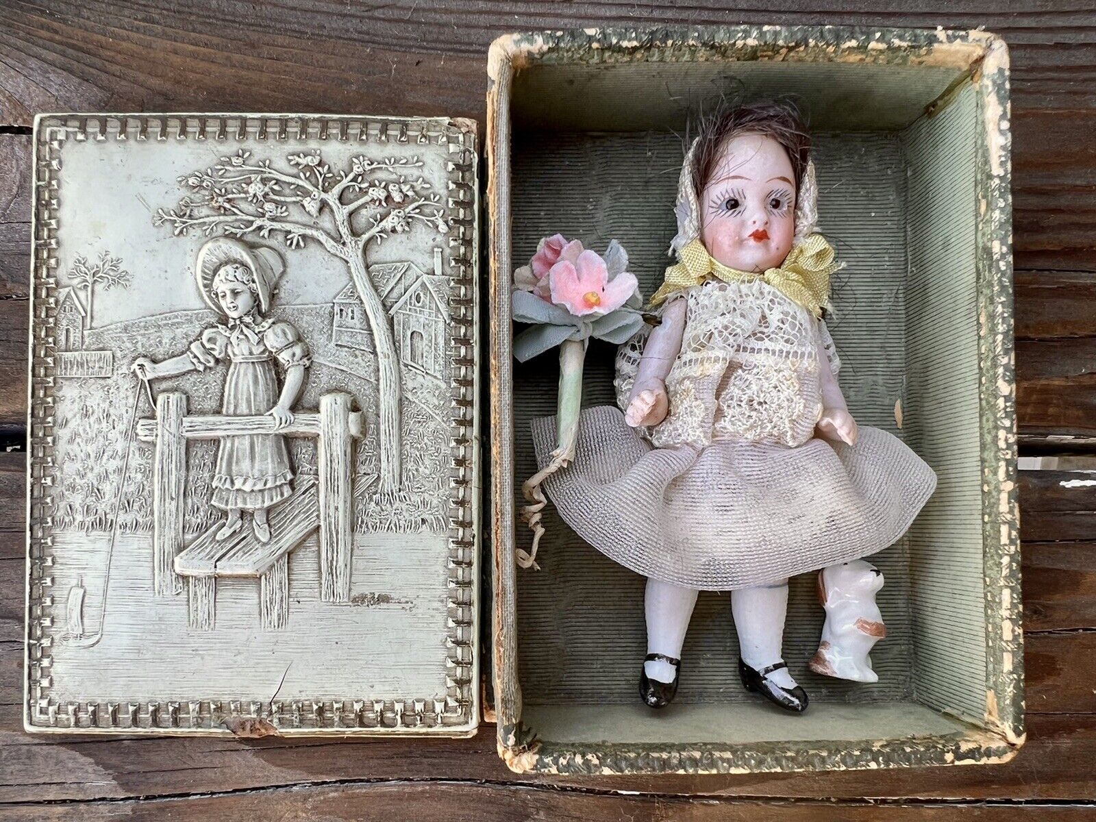 Title (ebay affiliate link): Antique German Bisque Miniature Dollhouse Doll Kate Greenaway Presentation Box