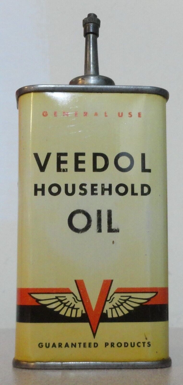 Title (ebay affiliate link): Rare Old Tide Water VEEDOL 4 oz Household Oil Can Vintage Lead Top Oiler Tin