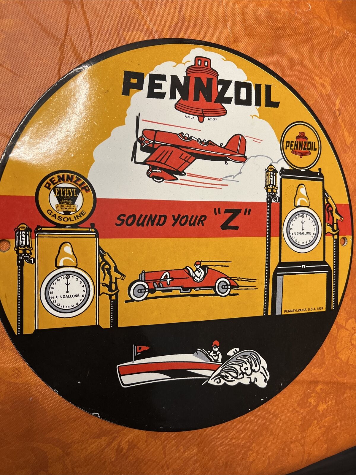 Title (ebay affiliate link): VINTAGE OLD DATED 1959 PENNZOIL MOTOR OIL GASOLINE PORCELAIN GAS STATION SIGN