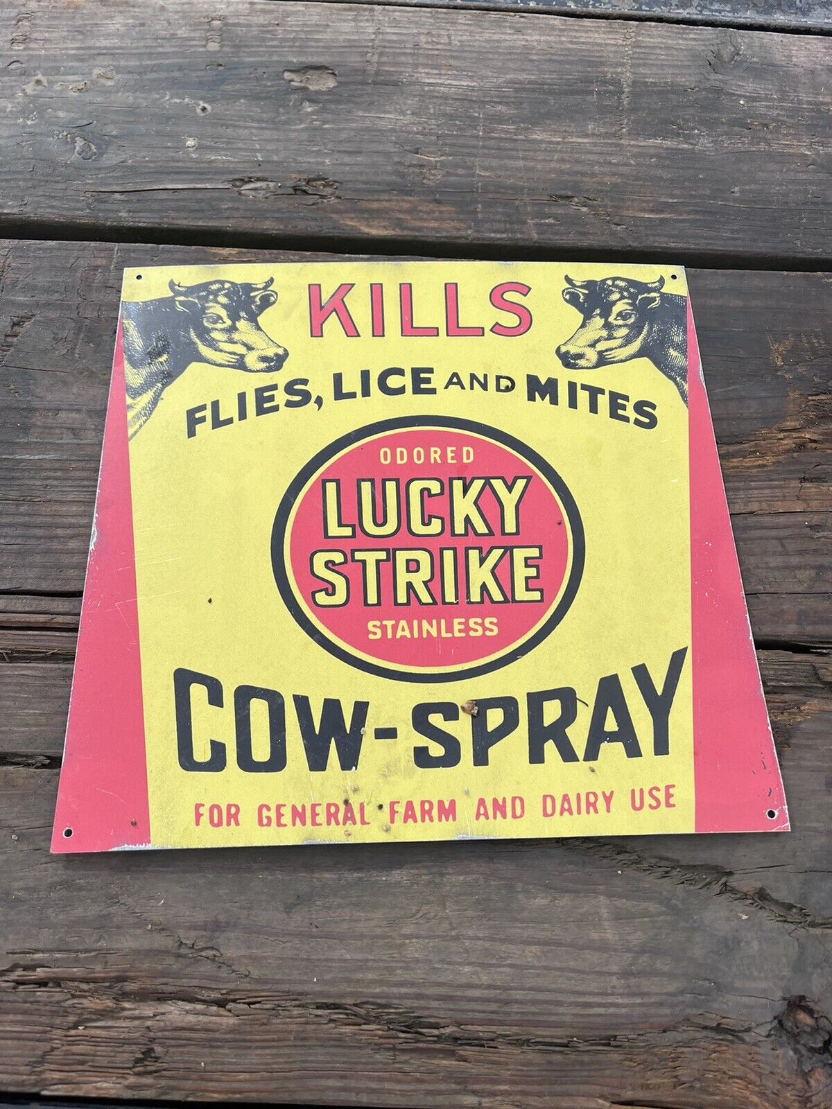 Lucky Strike Sign Dairy Farm Antique Vintage Feed Texaco Cow Cattle Spray Can