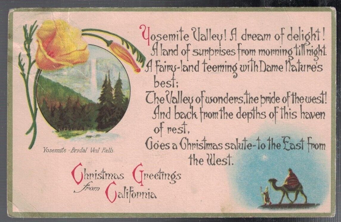 ANTIQUE 1915 CHRISTMAS GREETINGS FROM YOSEMITE VALLEY POSTCARD