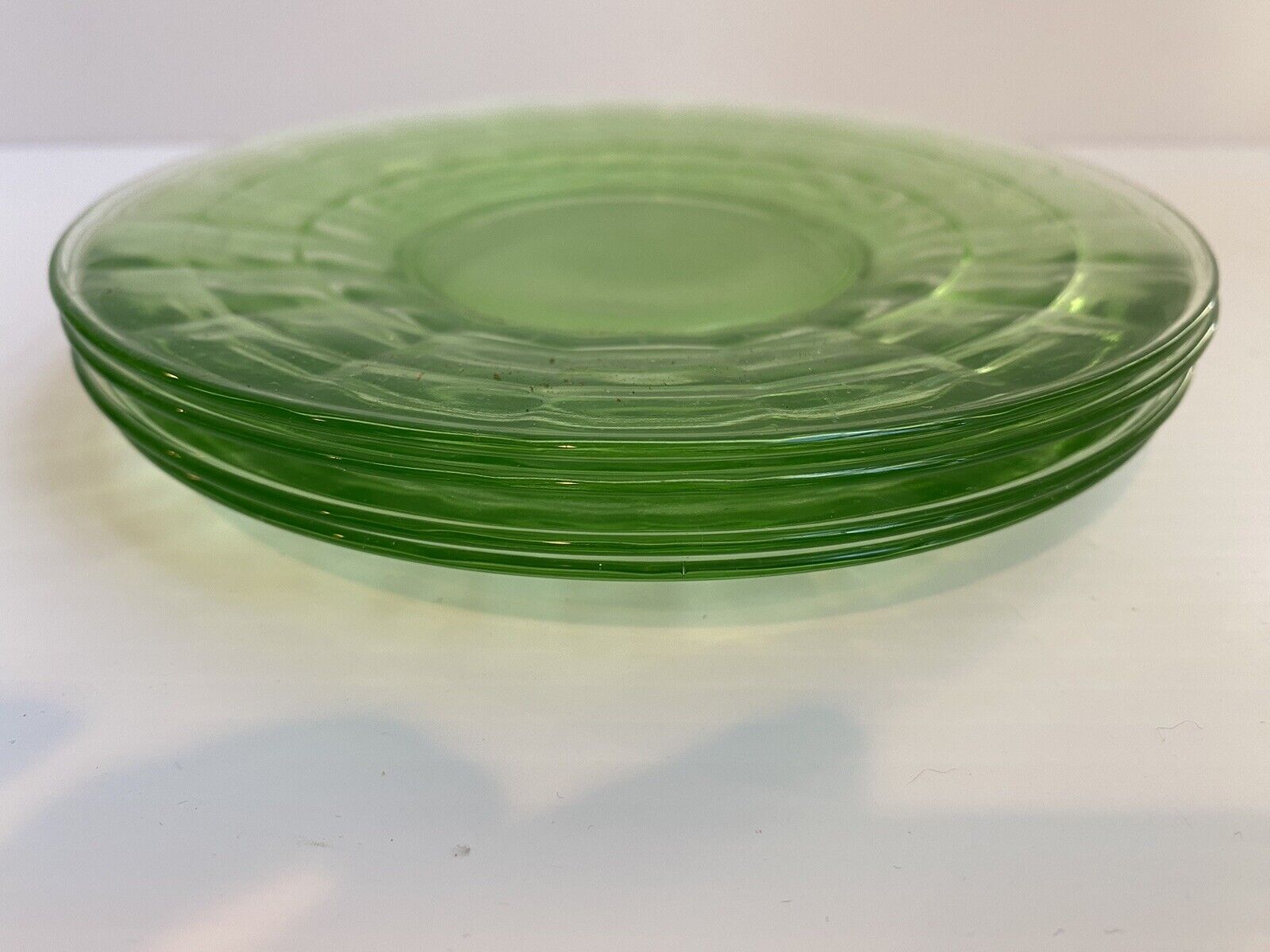 URANIUM Vintage Green Block Optic Set of 4 Plates 634 Anchor Hocking EUC