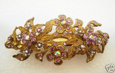 Title (ebay affiliate link): ANTIQUE PURPLE SWAROVSKI CRYSTAL FLOWERS GOLD HAIR CLIP