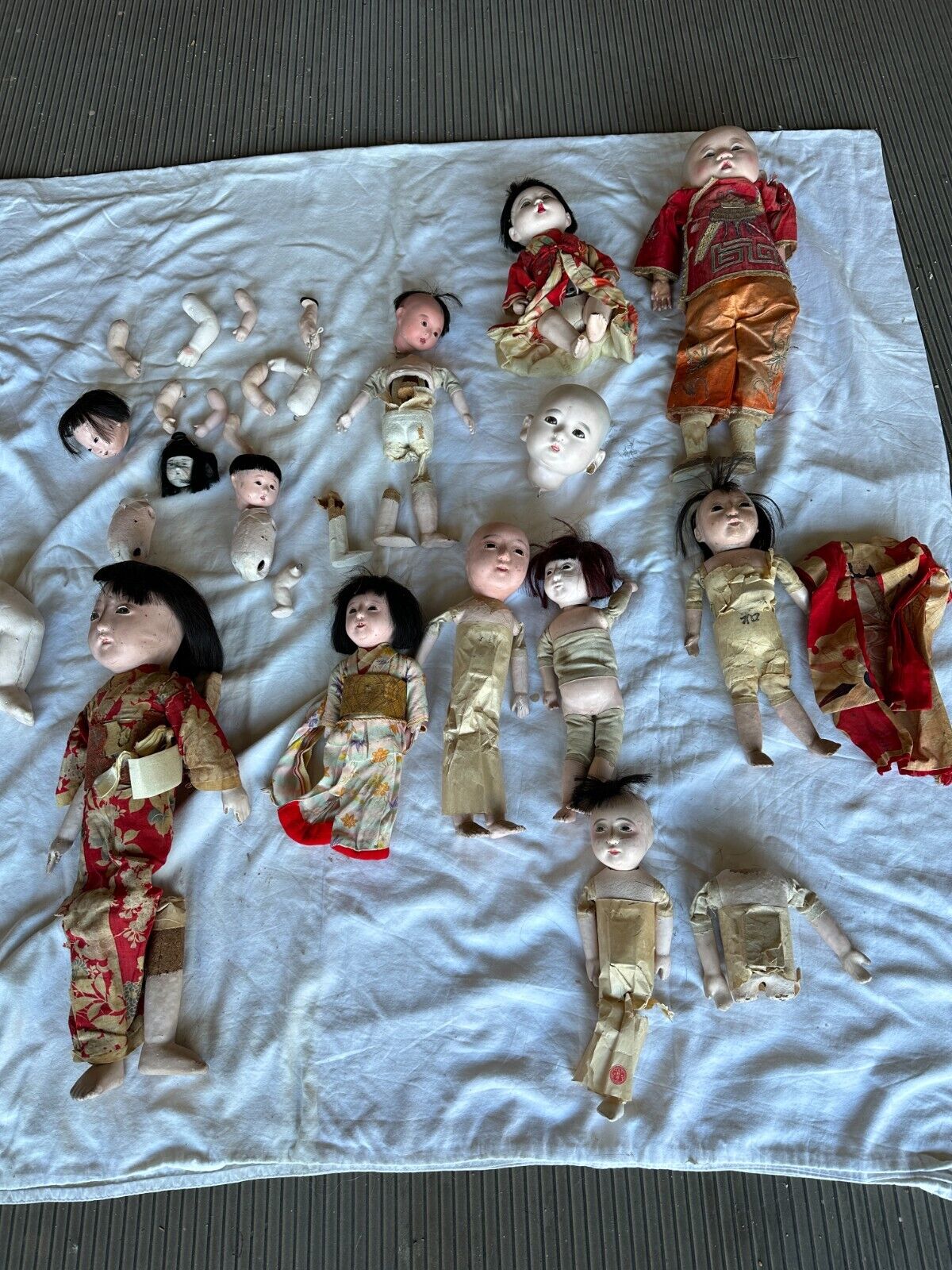 7 complete Antique Asian dolls and parts. Everyone needs some TLC