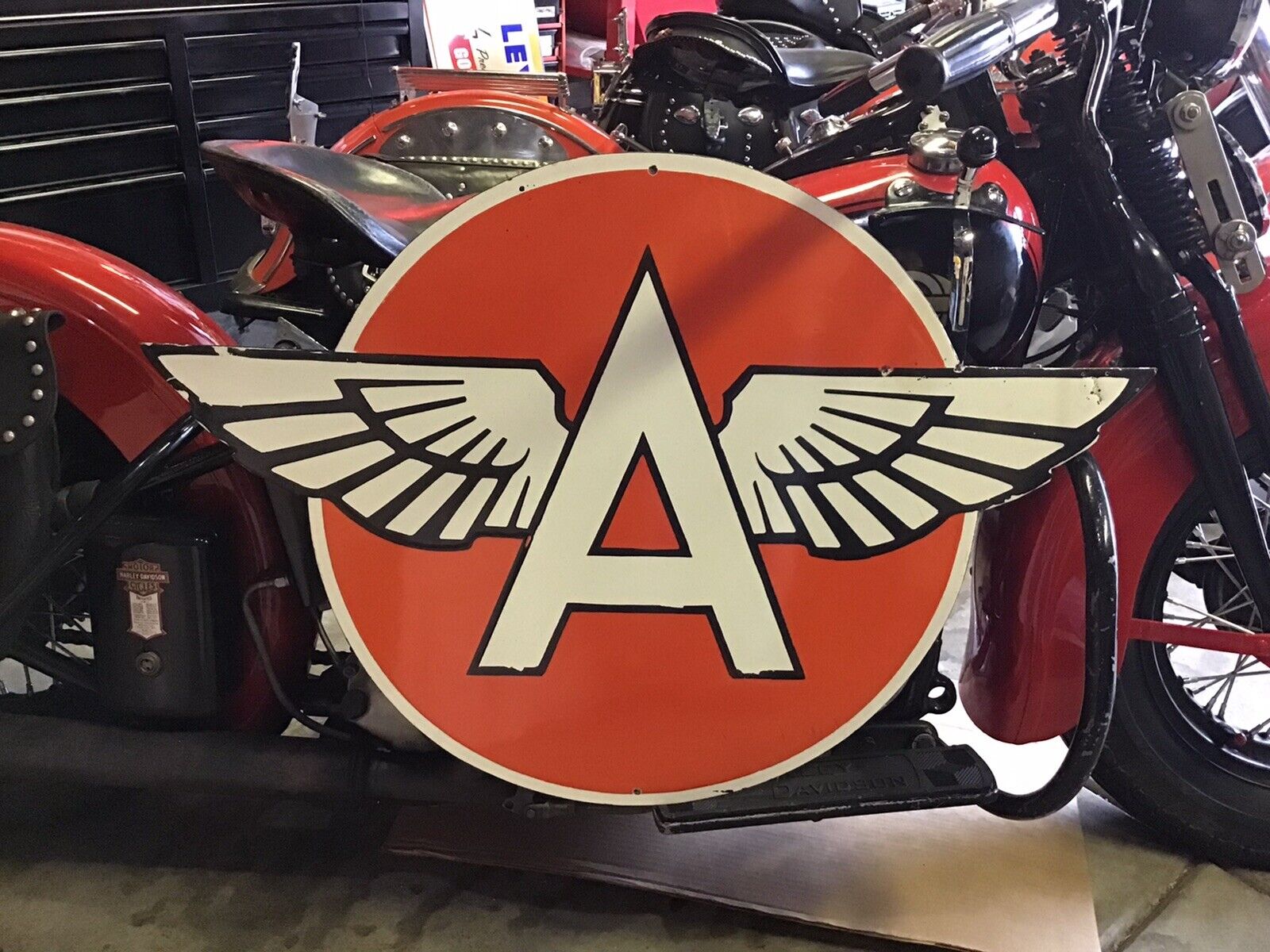 Title (ebay affiliate link): VINTAGE PORCELAIN FLYING A GAS STATION SIGN Harley Indian Ford Chevy Dodge