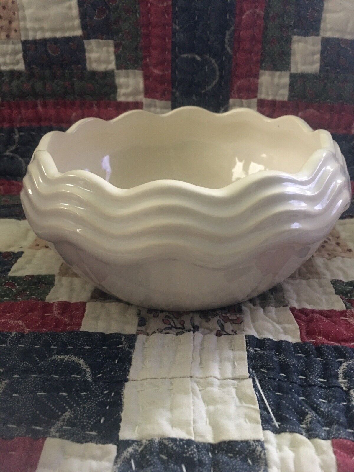 Vintage MCM McCoy USA White Art Pottery Planter Bowl with Wavy Scalloped Rim EUC