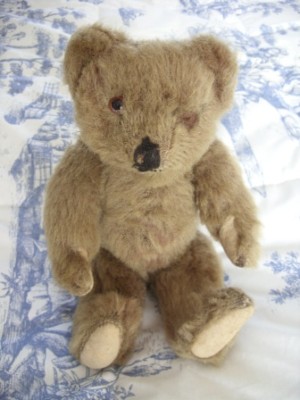 ANTIQUE OLD TEDDY BEAR STRAW FILLED HEAD PAINTED EYE