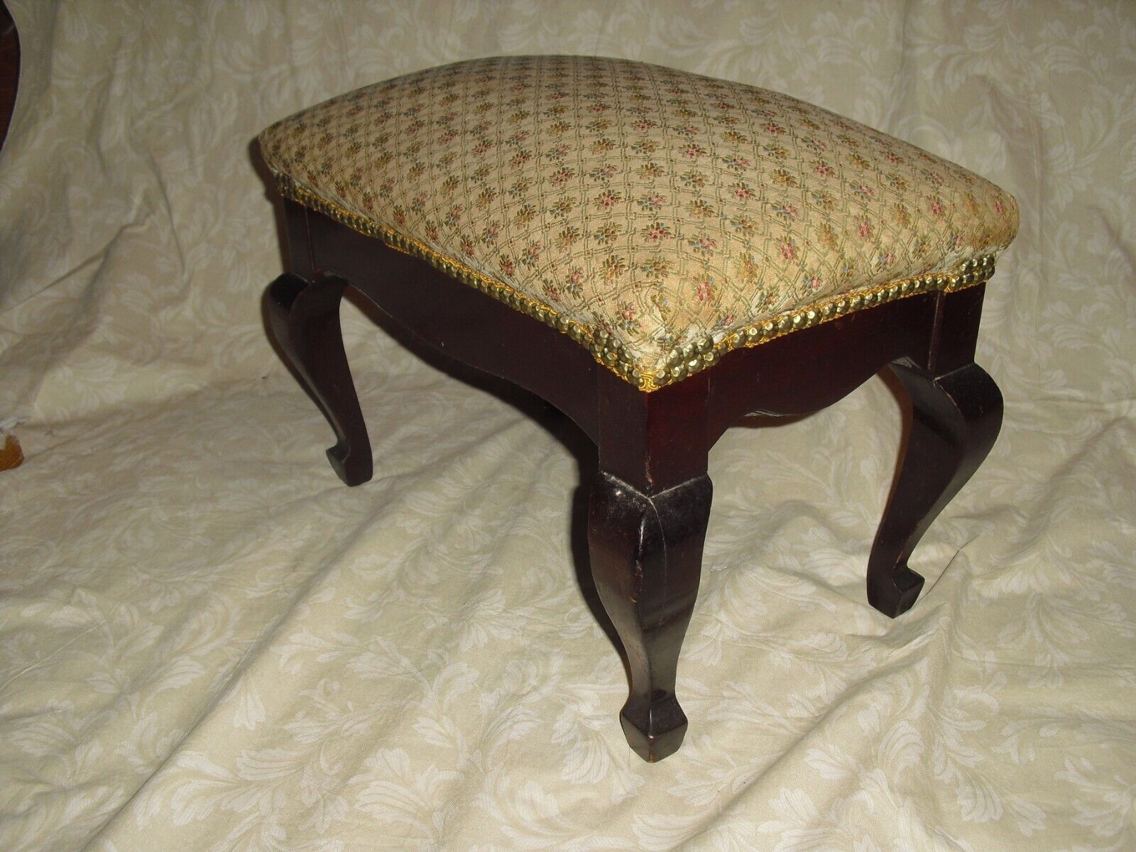 Antique Walnut Foot Stool Ottoman Upholstered