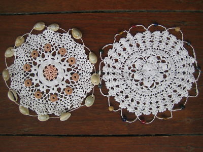 HAND CROCHETED MILK JUG COVERS GLASS BEADS SHELLS