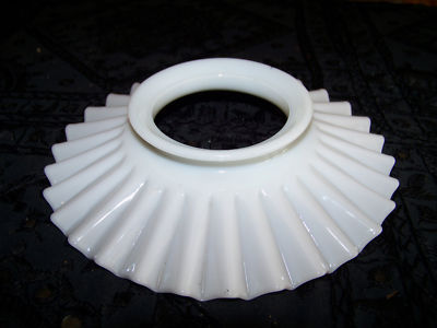 ANTIQUE MILK GLASS PETTICOAT PLEATED OIL LAMP SHADE