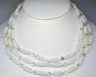 Vintage MILK GLASS Crystal AB BEAD 2 Strand NECKLACE