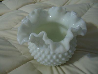 VINTAGE WHITE FENTON MILK GLASS HOBNAIL RUFFLE VASE POT