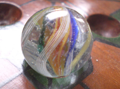 ANTIQUE HANDMADE RIBBON CORE MARBLE MARBLES- 3/4" DIAM