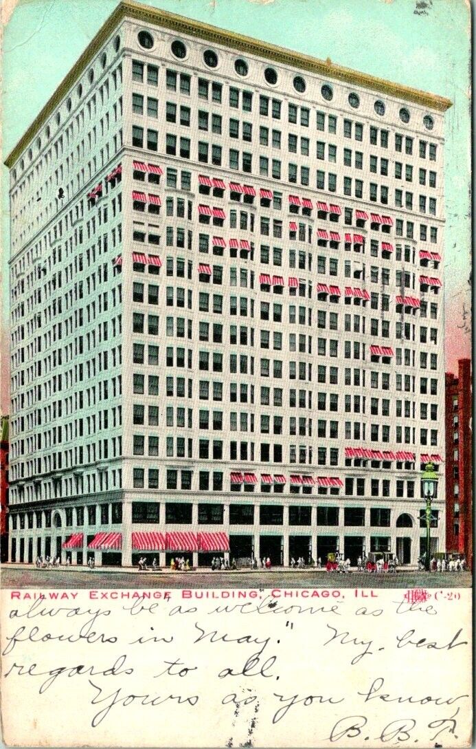 Title (ebay affiliate link): C654882 RAILWAY EXCHANGE BLDG CHICAGO ILL. ANTIQUE POSTCARD.