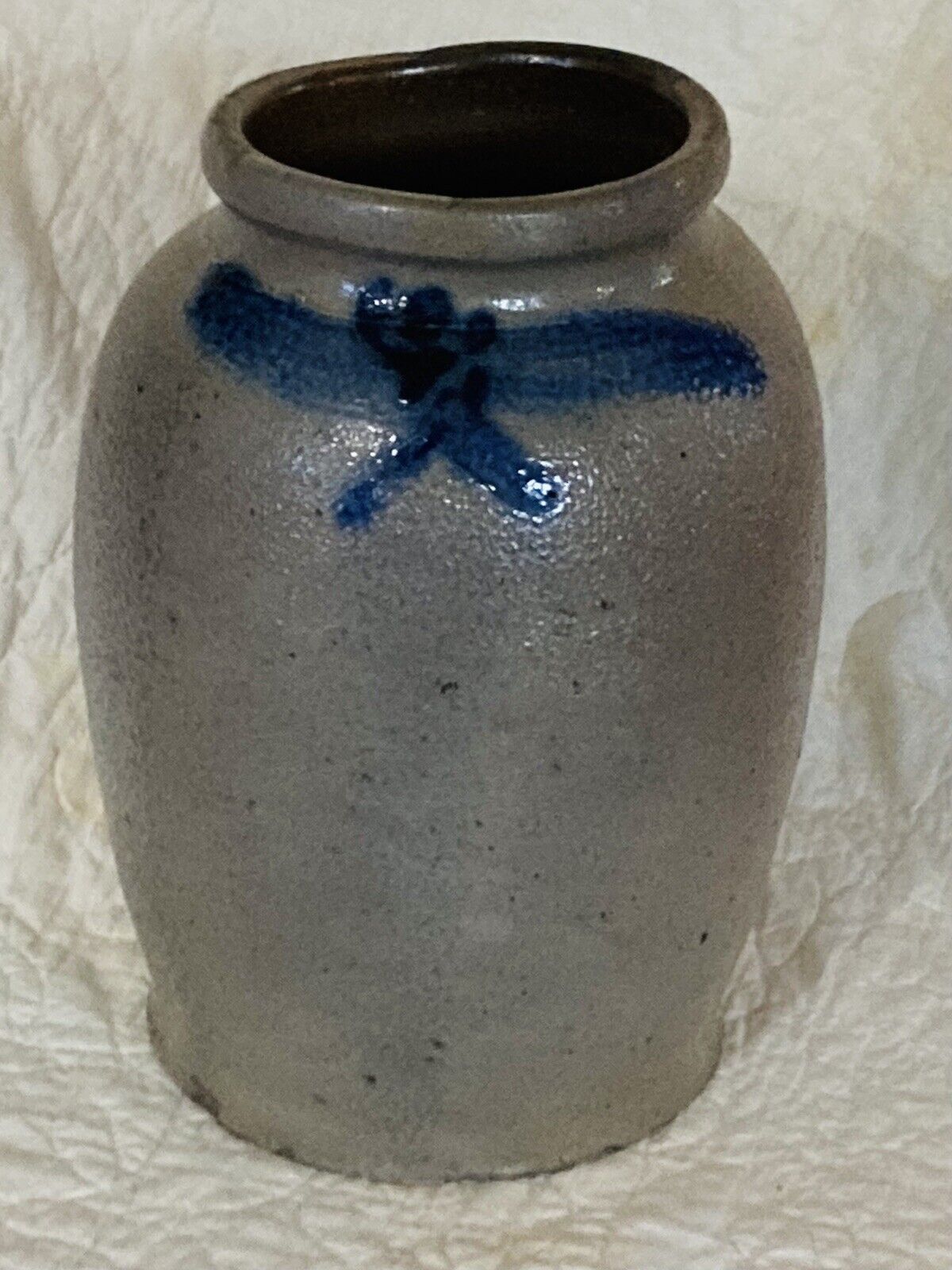 Title (ebay affiliate link): Antique Stoneware Jar Crock Semi Ovoid Salt Glaze Blue Pottery American Canning