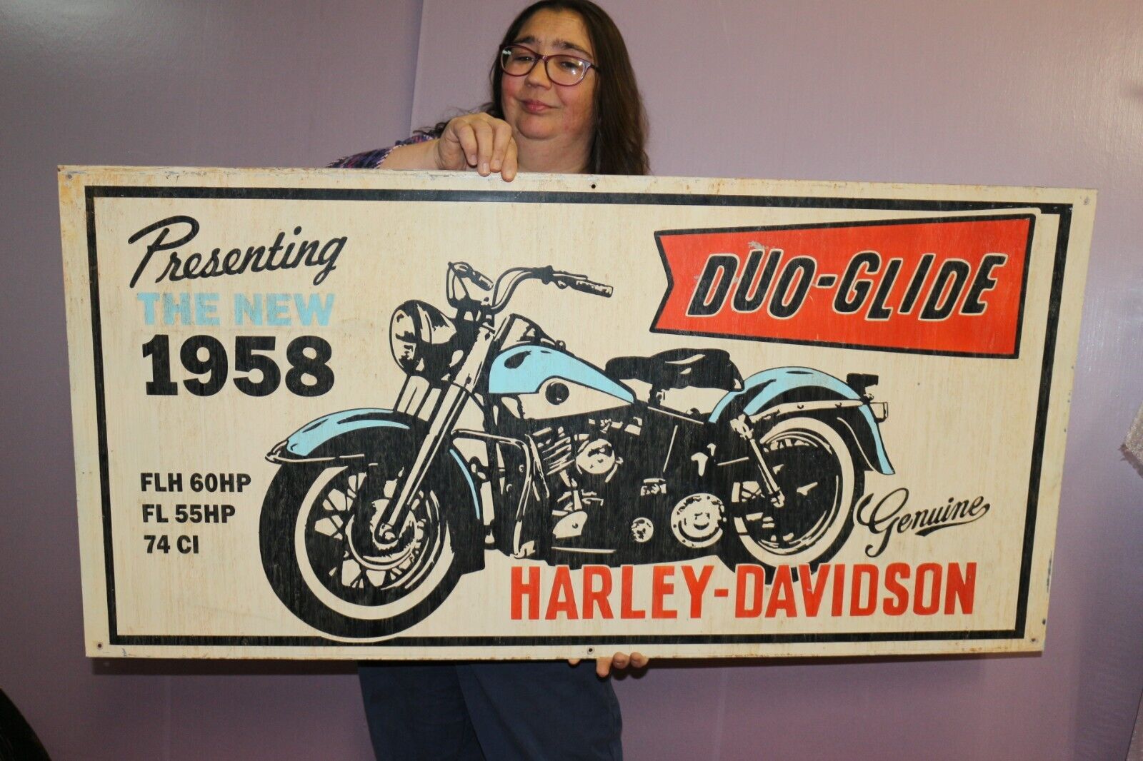 Title (ebay affiliate link): Large Harley Davidson 1958 DuoGlide Motorcycle 4834 Metal Sign