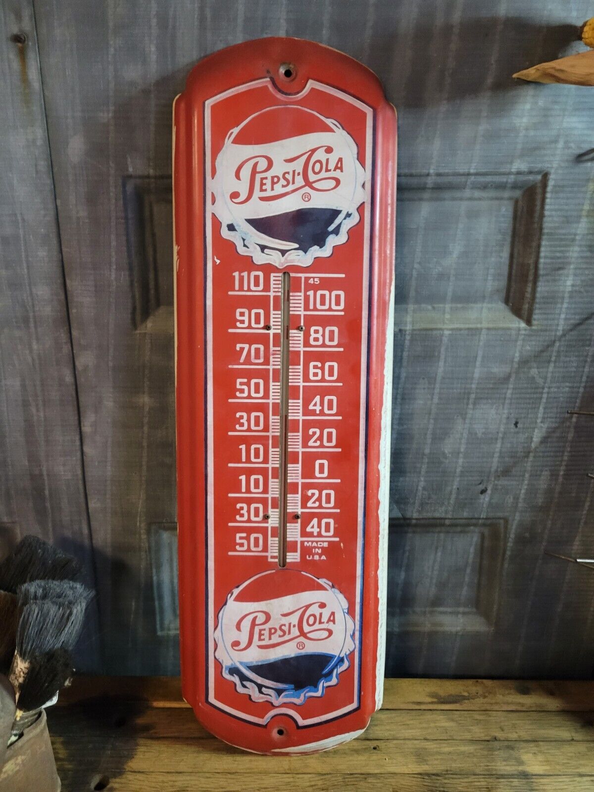 Title (ebay affiliate link): Vintage Pepsi Cola Red Thermometer Metal Tin Soda Sign 27x8 Made In USA
