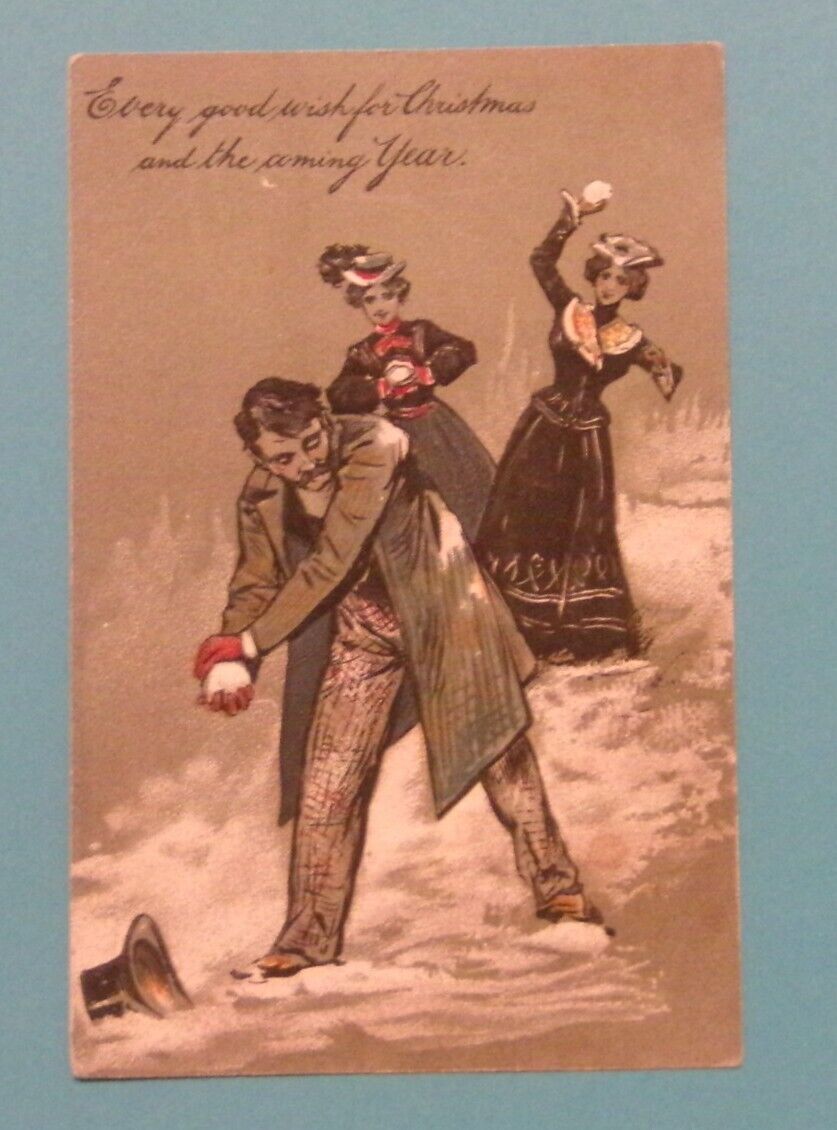 Title (ebay affiliate link): COOL ANTIQUE VICTORIAN ERA CHRISTMAS POSTCARD SNOWBALL FIGHT UNPOSTED