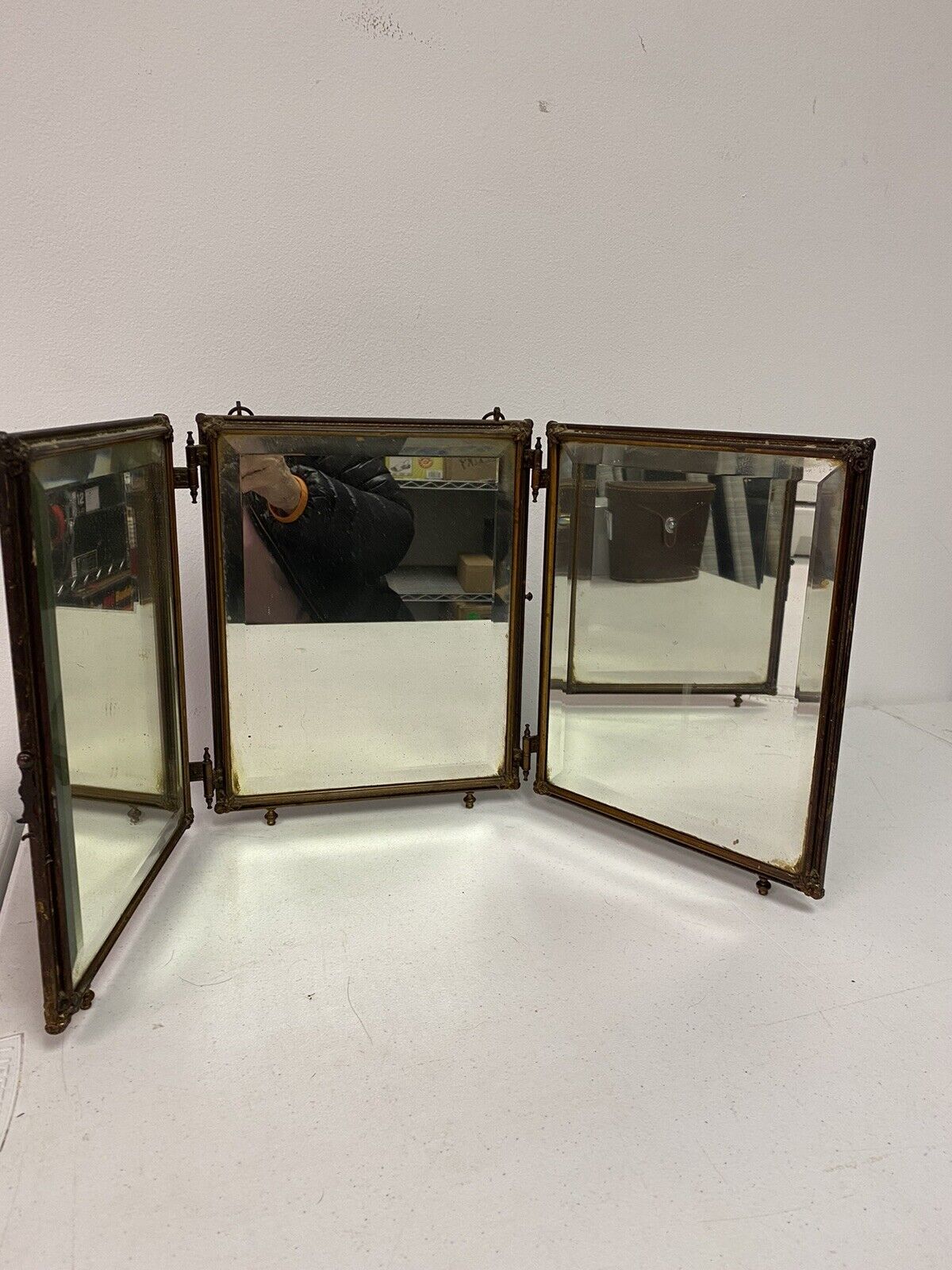 Title (ebay affiliate link): Antique Trifold 3 Panel Beveled Mirror Vanity Shaving Dresser Or Hang
