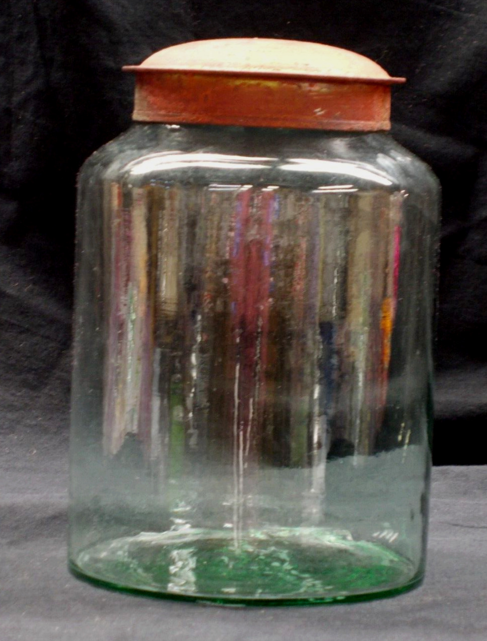 Title (ebay affiliate link): ANTIQUE/VINTAGE STYLE GREEN TINTED STORAGE JAR WITH DISTRESSED RED TIN LID NEW