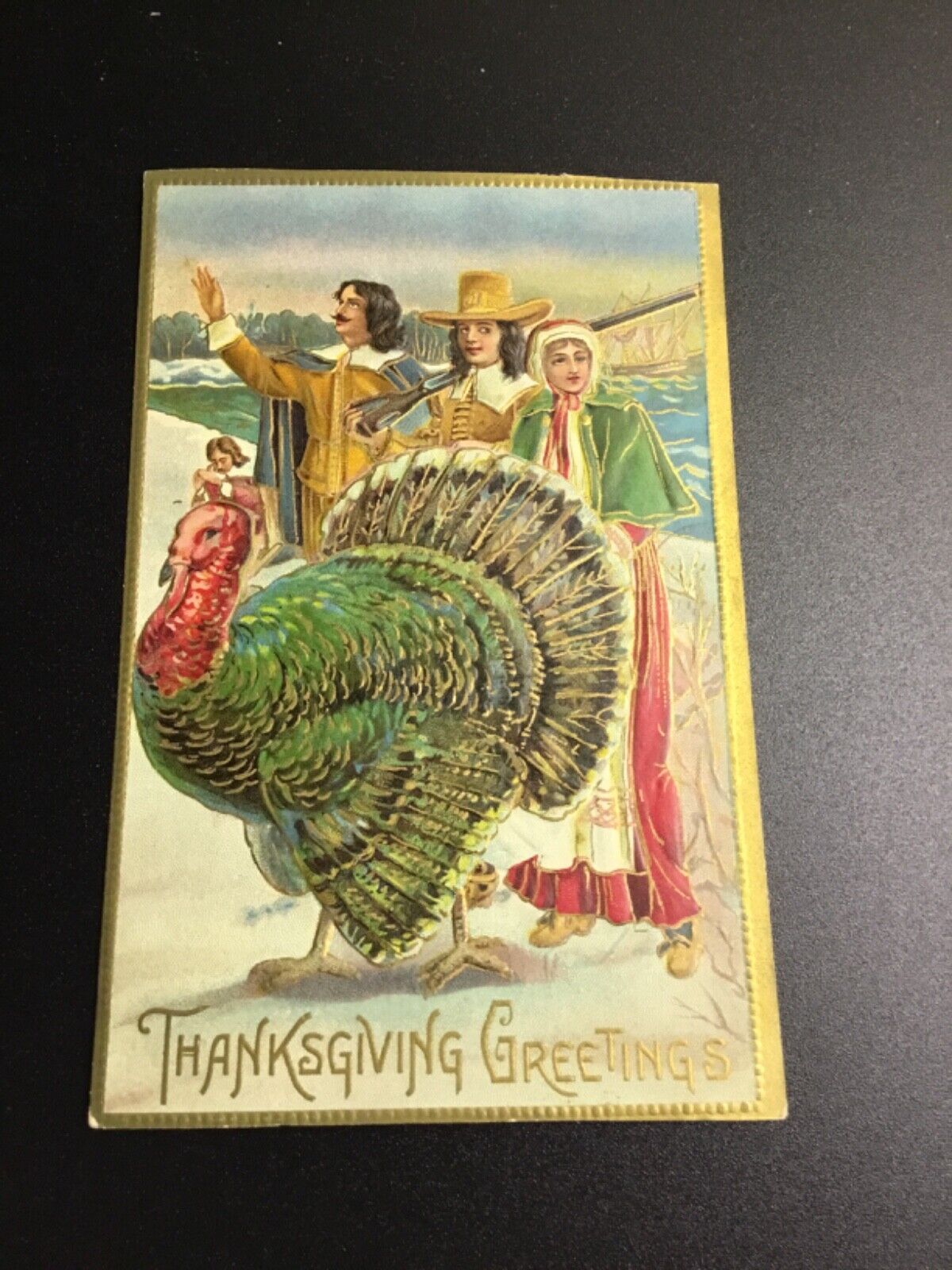 Title (ebay affiliate link): Antique Thanksgiving Postcard Pilgrims Large Turkey NICE