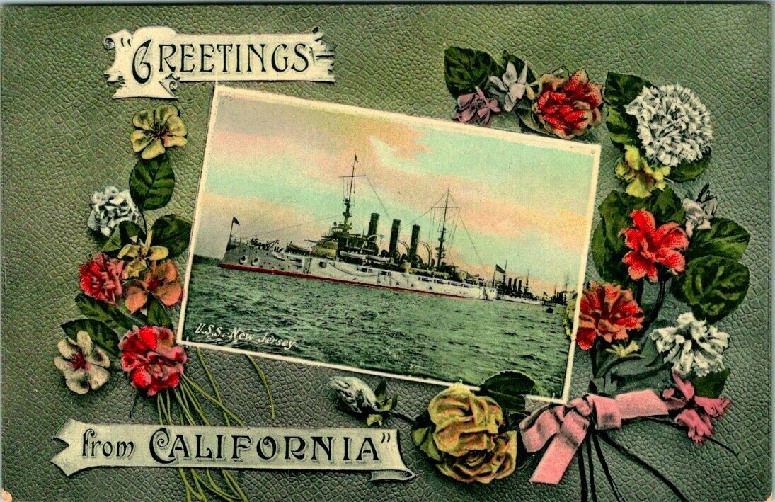 C656979 U.S.S. NEW JERSEY ANTIQUE POSTCARD.