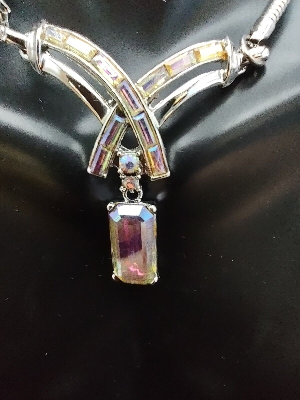 Vintage Coro Signed Costume Jewelry Necklace Iridescent Aurora Borealis Marquis