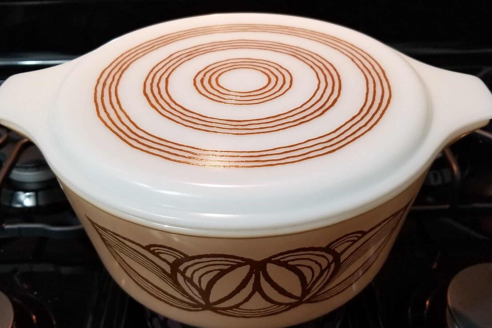 Vintage Pyrex 475 B Raffia Brown Onion Lid