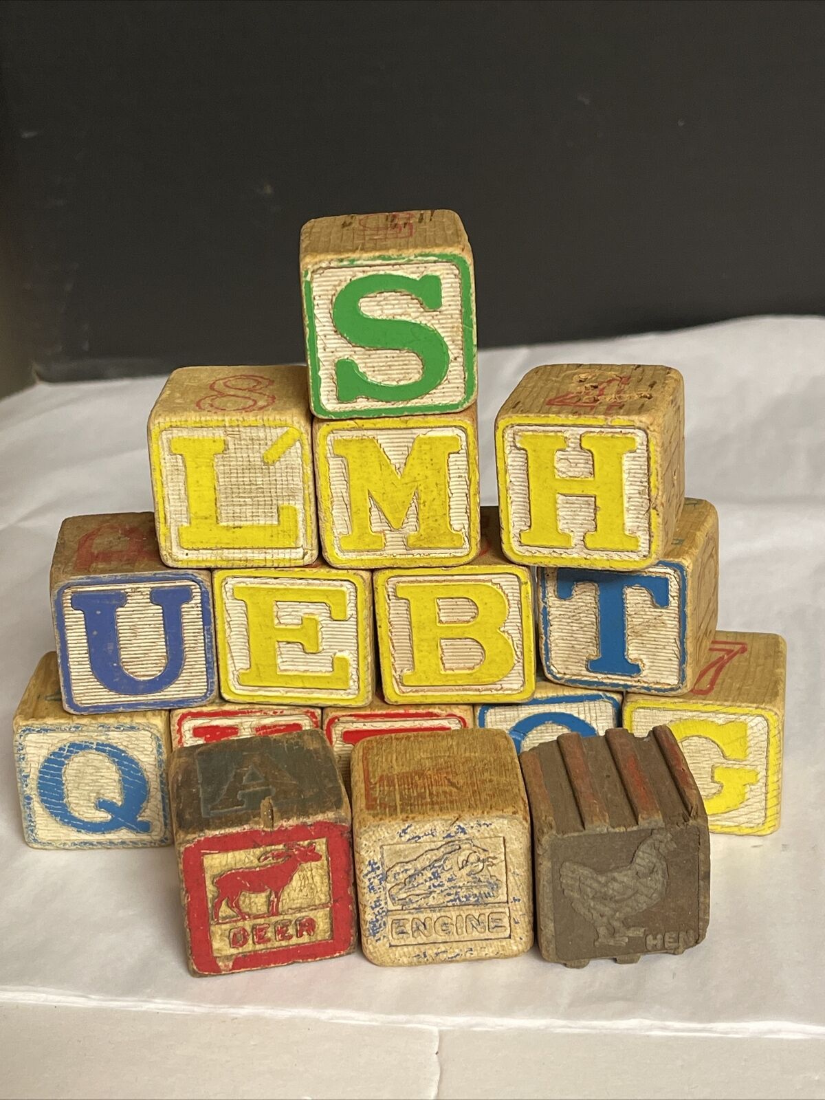 Antique Vintage Wooden Childrens Alphabet Blocks Lot Of 16