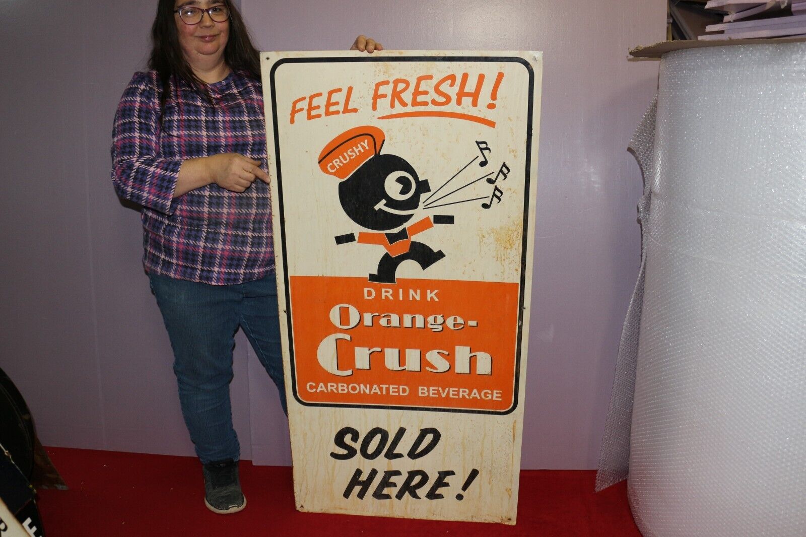 Large Vintage Drink Orange Crush Sold Here Crushy Soda Pop 4834 Metal Sign
