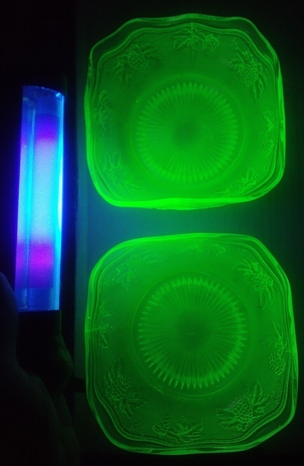Title (ebay affiliate link): Two 2 Depression Era Vaseline/Uranium Glass Bowls Vine/Grape Etched Glows
