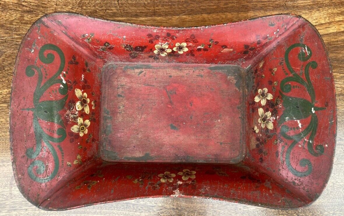 Title (ebay affiliate link): Very Good 19th century Tin Toleware Red Tole Painted Apple Tray