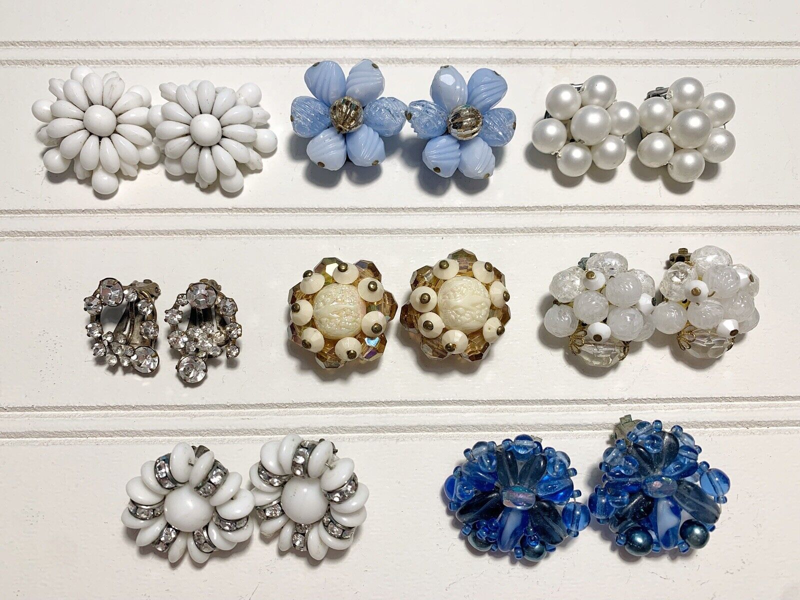 Title (ebay affiliate link): 8 VINTAGE MADE IN AUSTRIA /GERMANY CLIP ON EARRINGS MILK GLASS /GLASS/ PLASTIC