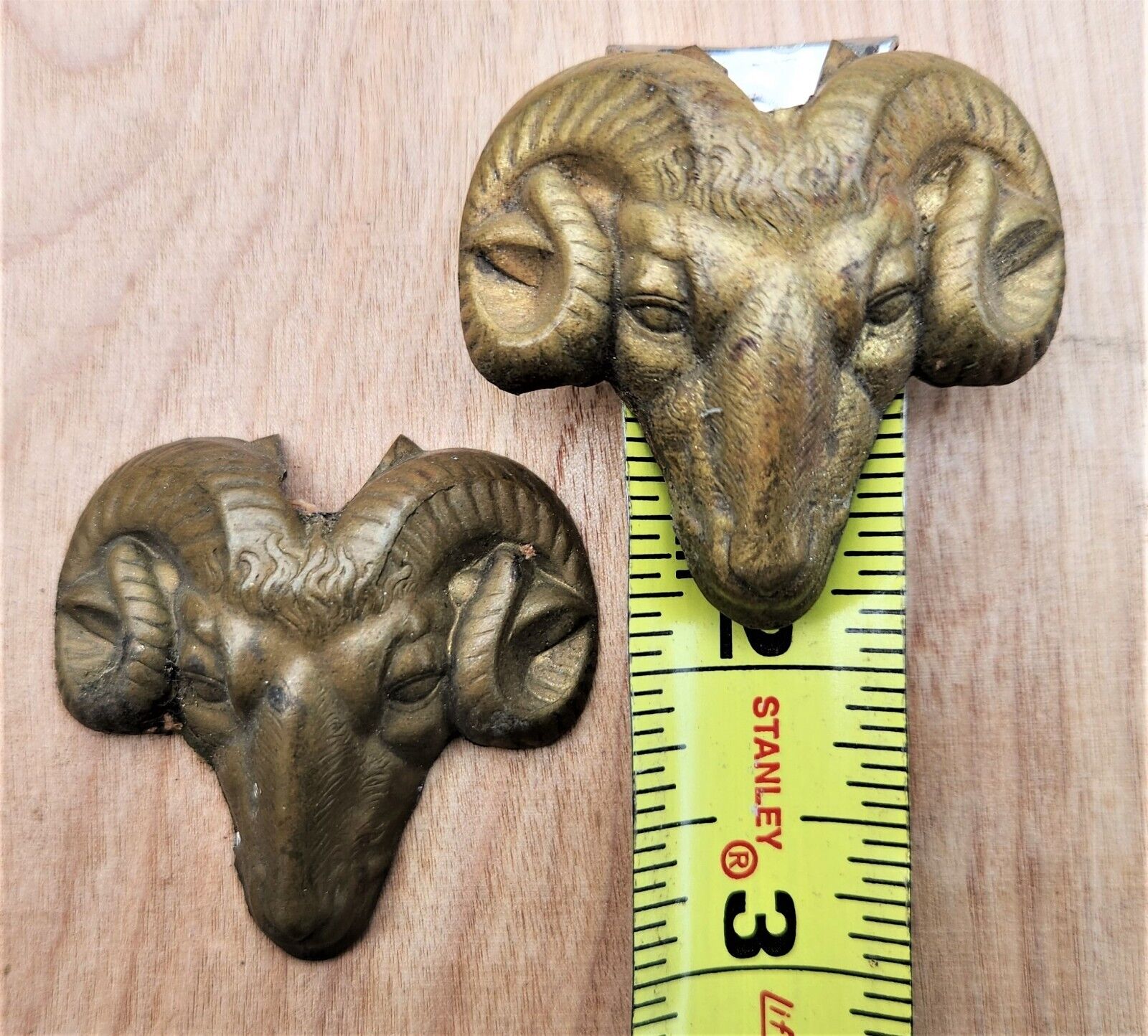 Pair ram head Pressed Brass Decorative Furniture Hardware Pieces Salvage