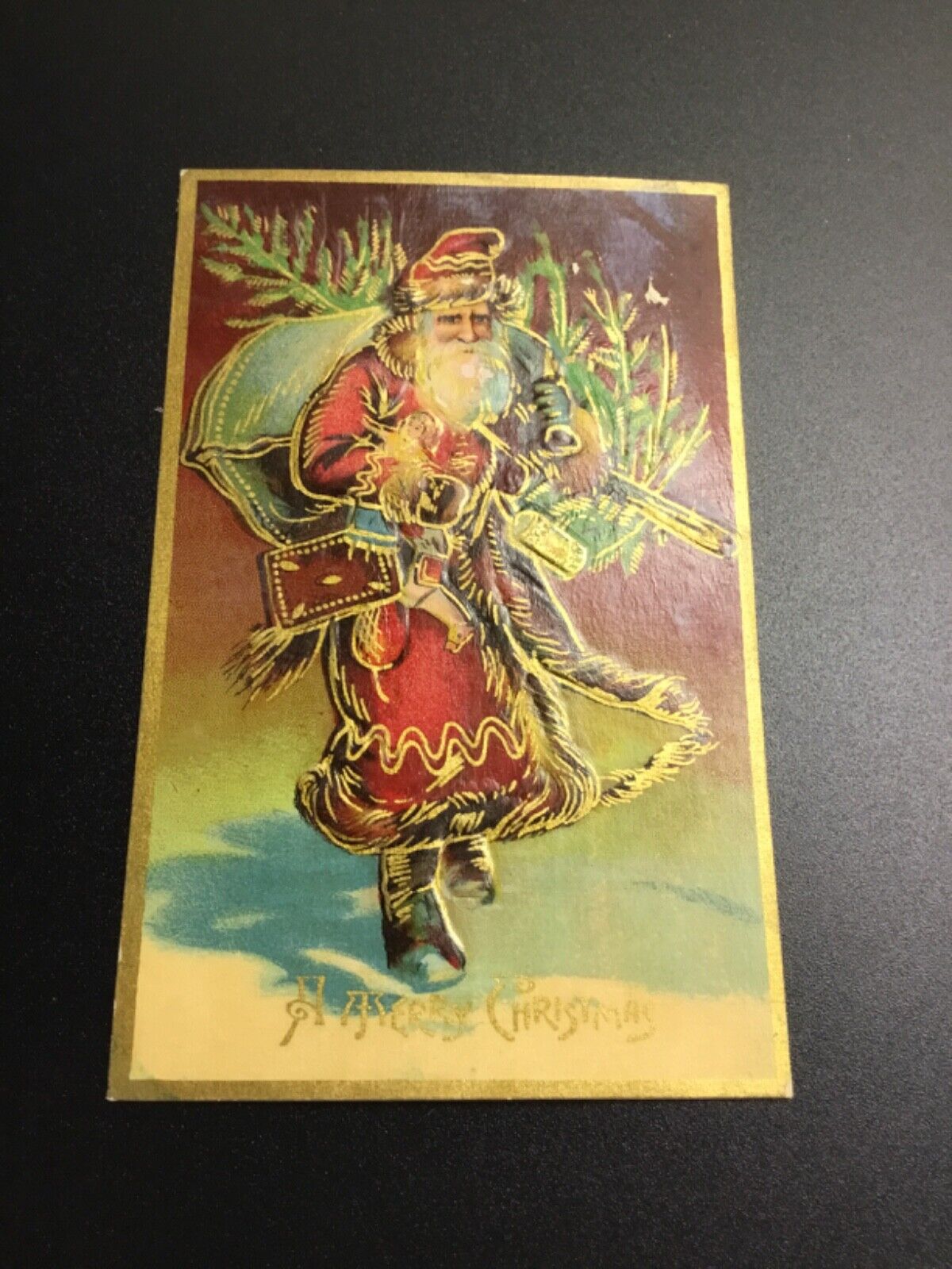 Antique Christmas Postcard Old World Santa Claus Gold Edging