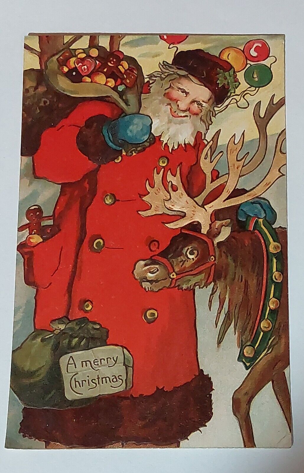 Antique German Santa Reindeer A Merry Christmas Postcard H3023 unposted