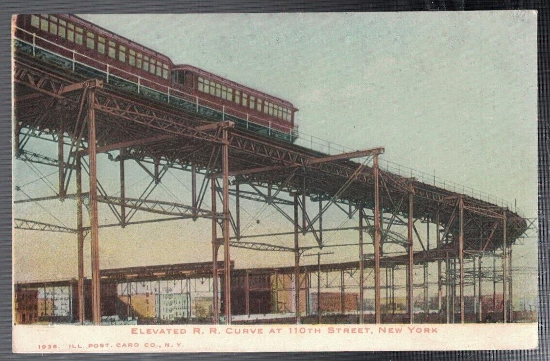 ANTIQUE 1905 UDB ELEVATED RAILROAD CURVE AT 110TH STREET NEW YORK CITY POSTCARD