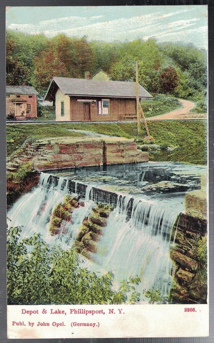 ANTIQUE 19071910 TRAIN DEPOT LAKE PHILLIPSPORT NEW YORK POSTCARD