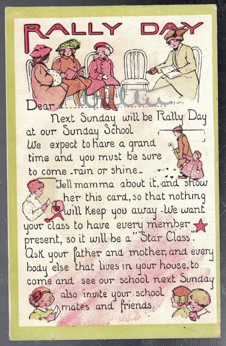 Title (ebay affiliate link): ANTIQUE 1914 SUNDAY SCHOOL RALLY DAY CHICAGO ILLINOIS POSTCARD