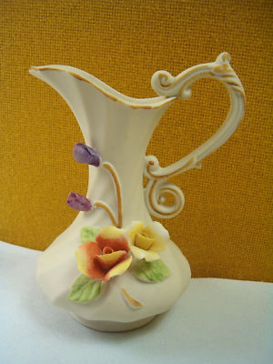 CAPODIMONTE BISQUE PITCHER FLORAL VASE ONE HANDLE