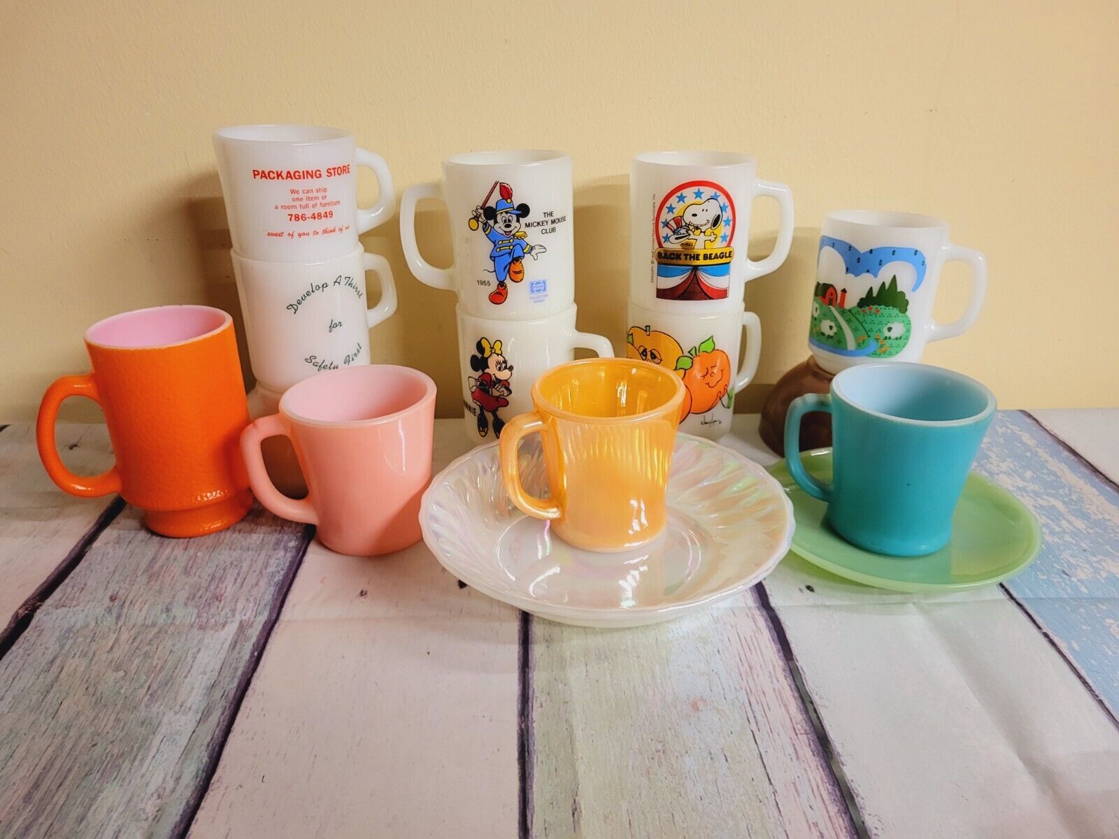 15 FIRE KING CHILI BOWLS D HANDLE MUGS SNOOPY MICKEY MOUSE MORE