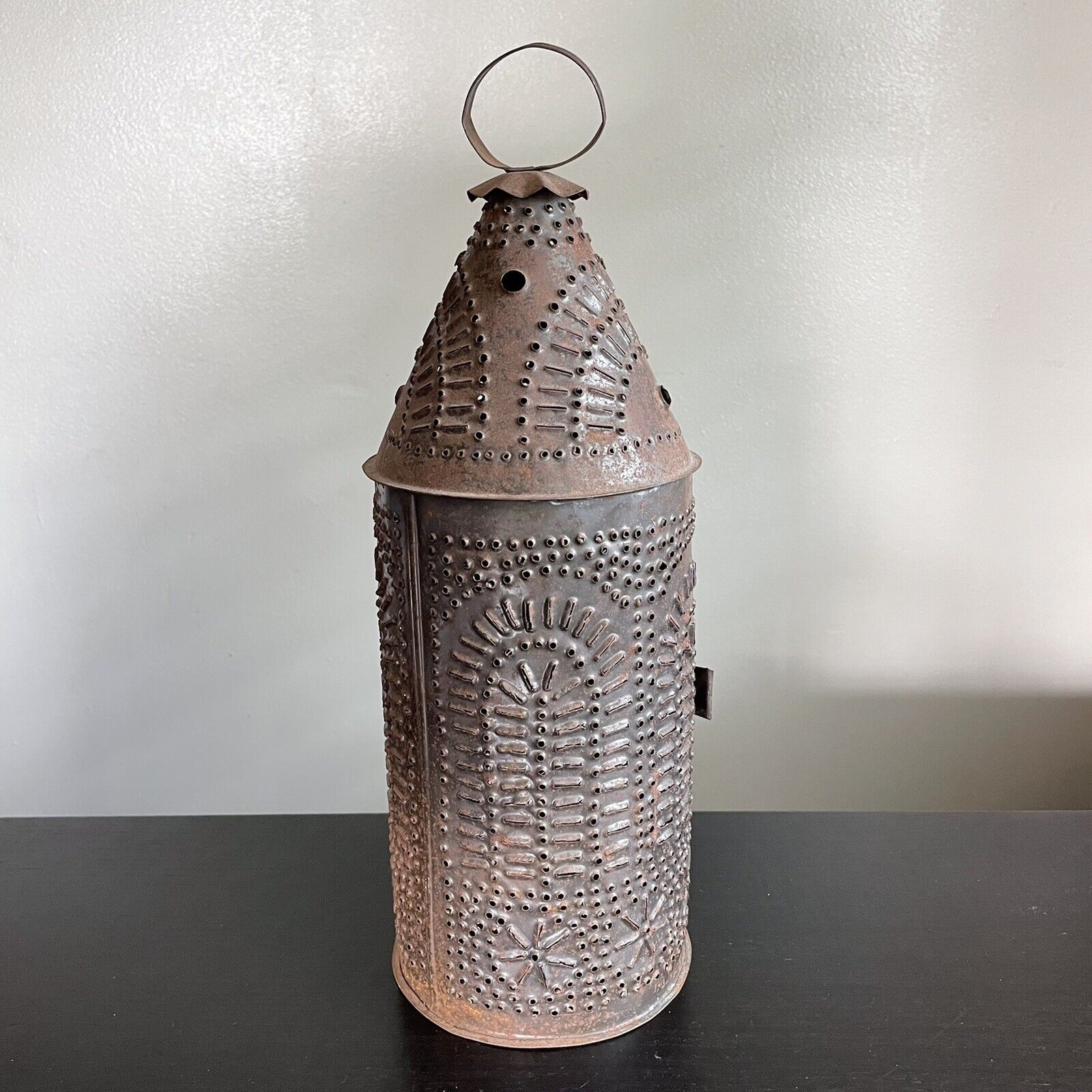 Title (ebay affiliate link): MMA ANTIQUE PUNCHED TIN LANTERN ROOF TOP CANDLE CUP PRIMITIVE FOLK ART SIGNED NR