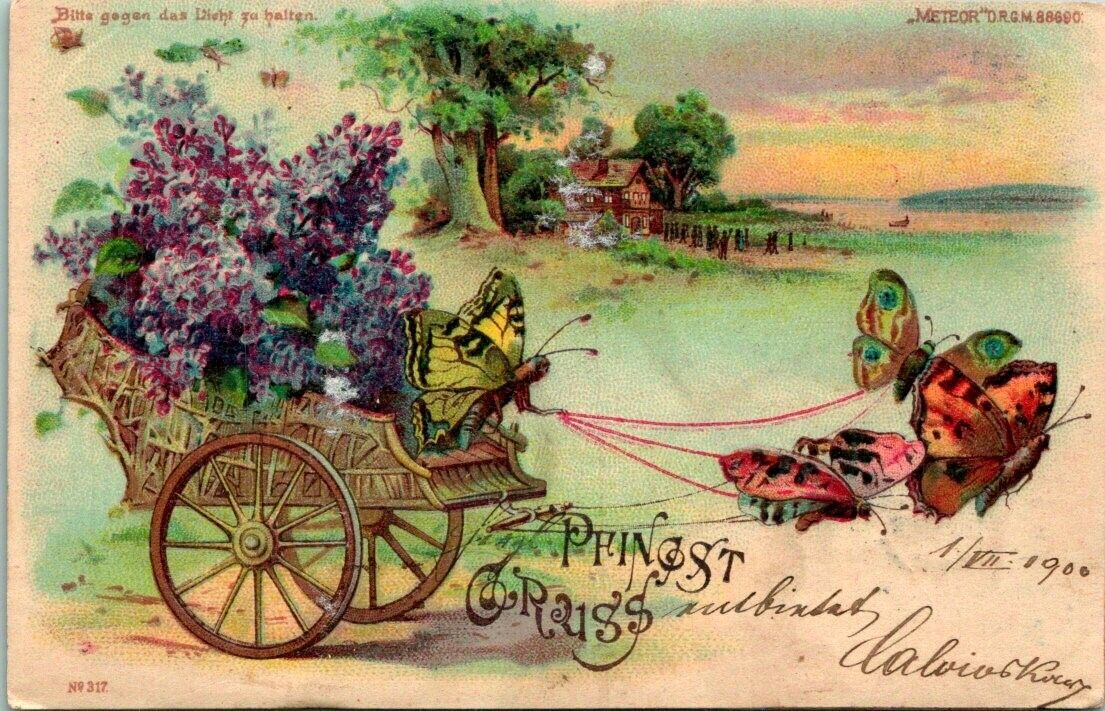 Title (ebay affiliate link): C659269 BUTTERFLIES AND FLOWER CART AUSTRIAN ANTIQUE POSTCARD.