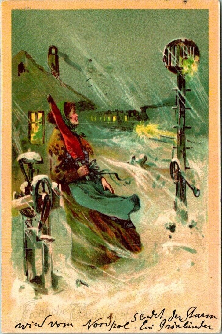 C659195 CHRISTMAS GREETINGS GERMAN ANTIQUE POSTCARD.
