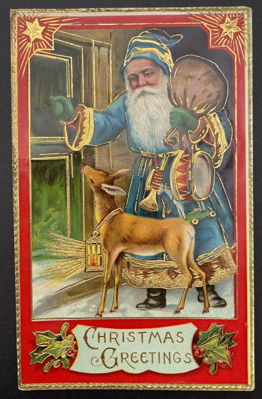 Antique/ vintage Santa postcard blue coat printed in Germany
