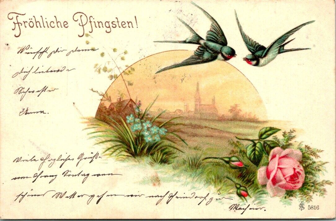 C659183 FROHLICHE PFINGSTERN AUSTRIAN ANTIQUE POSTCARD.