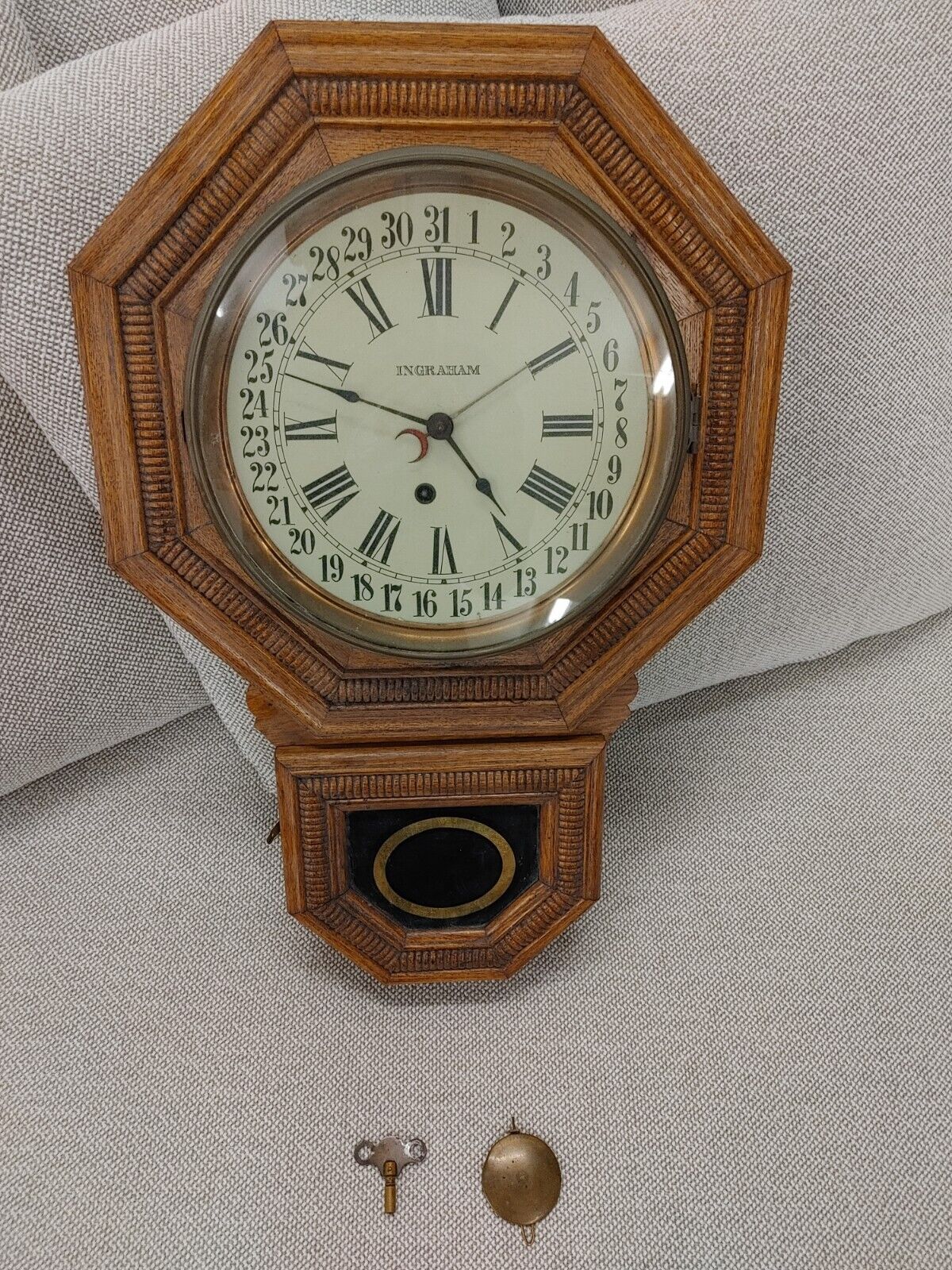 Antique Ingraham Wood Wall Clock For Repair or Parts