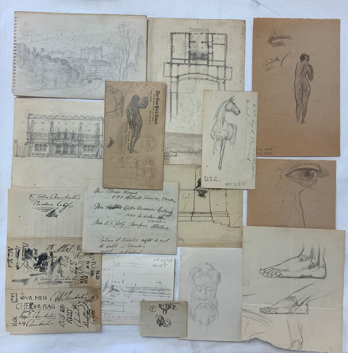 Vtg Antique Frank Tolles Chamberlin Sketches Drawings Studies Doodles Portfolio