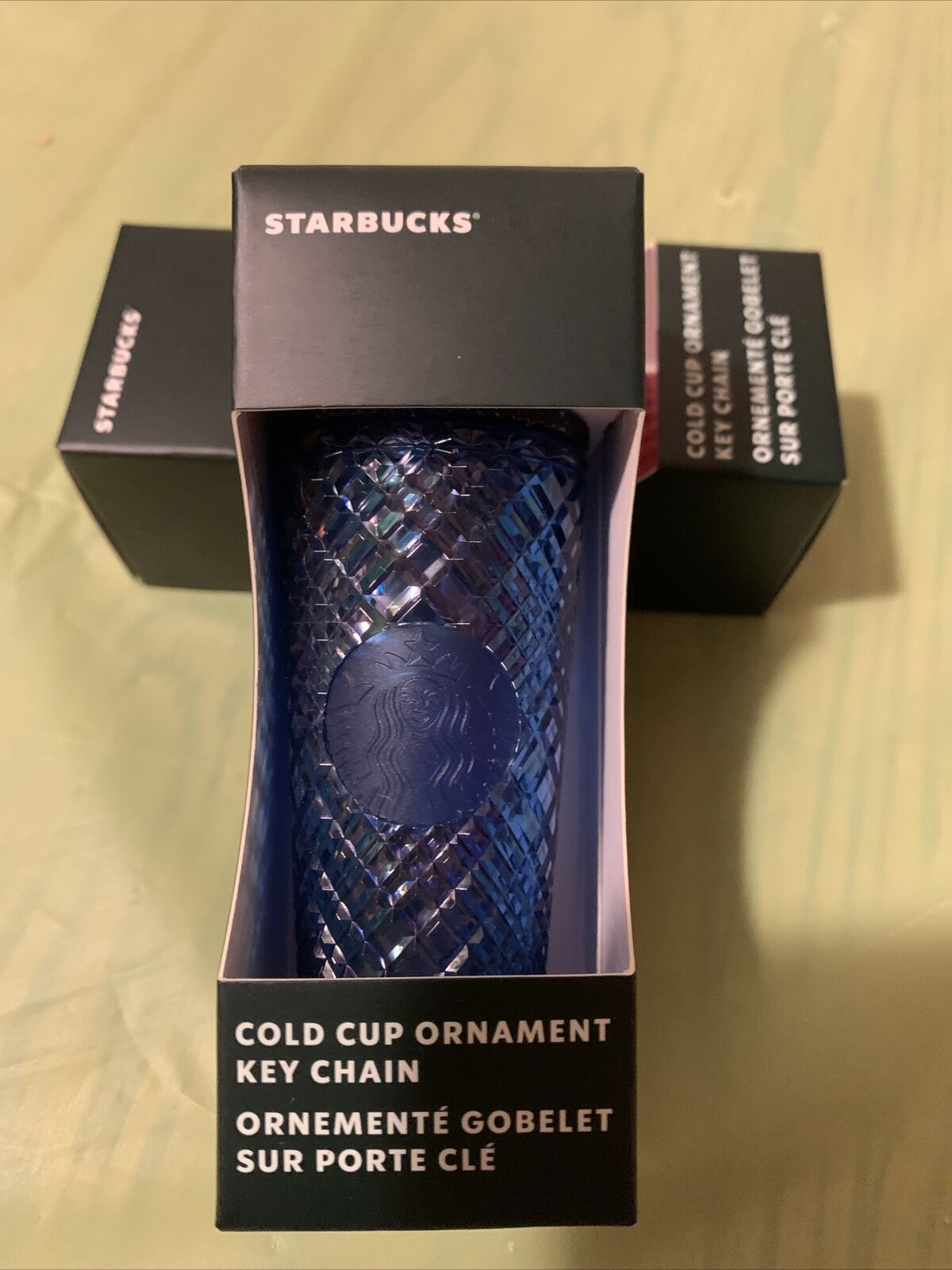 Starbucks 2022 Mini Christmas Studded Tumbler Ornaments Key Chain Blue NEW HTF