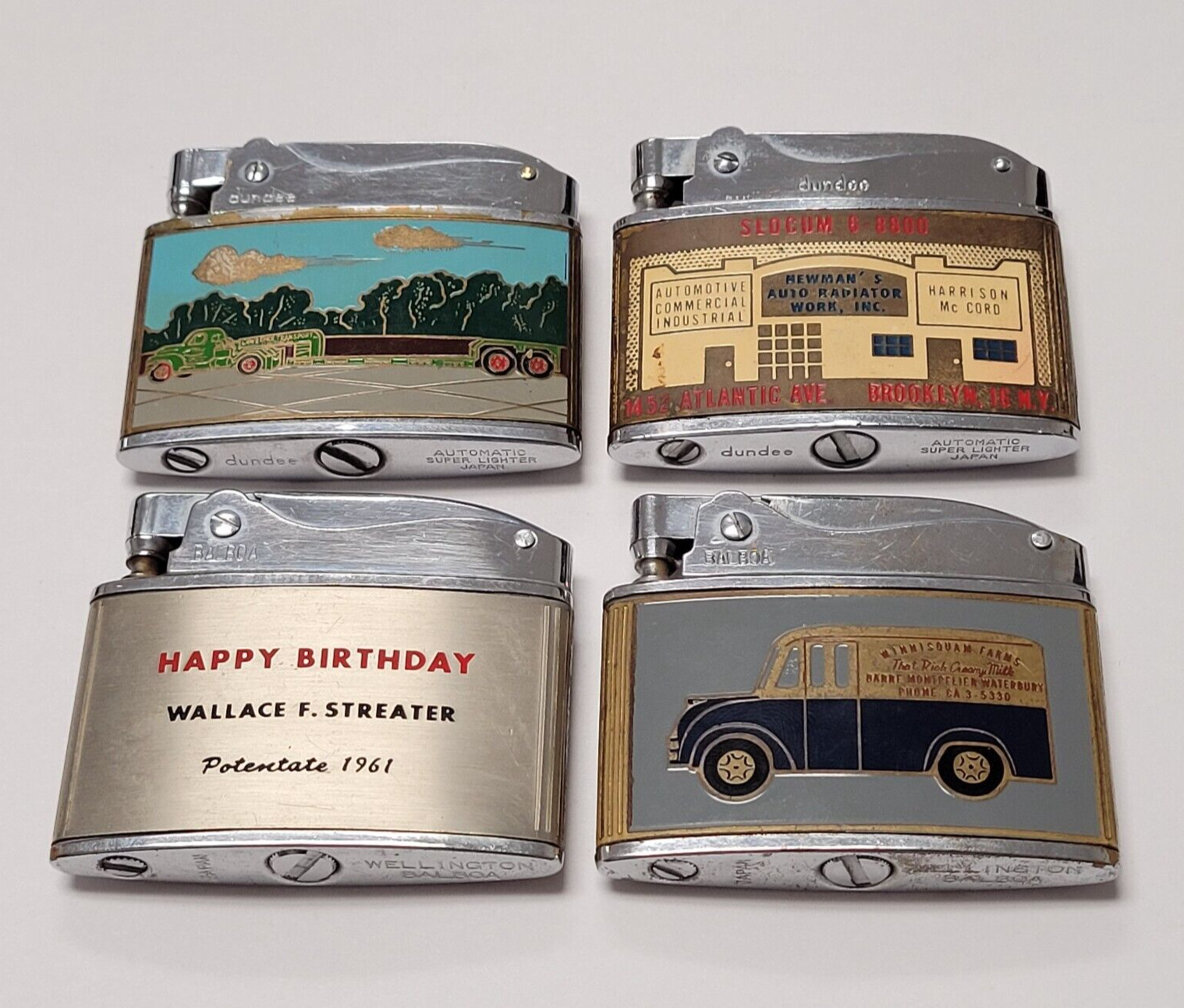 Title (ebay affiliate link): Vintage Flat Advertiser 4 Lighter Lot | Winnisquam Farms | Transport | Working |